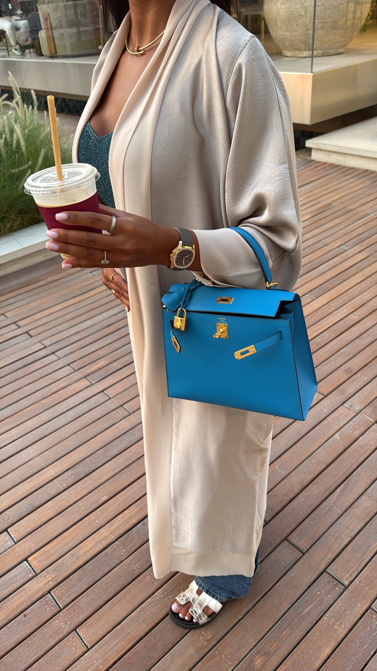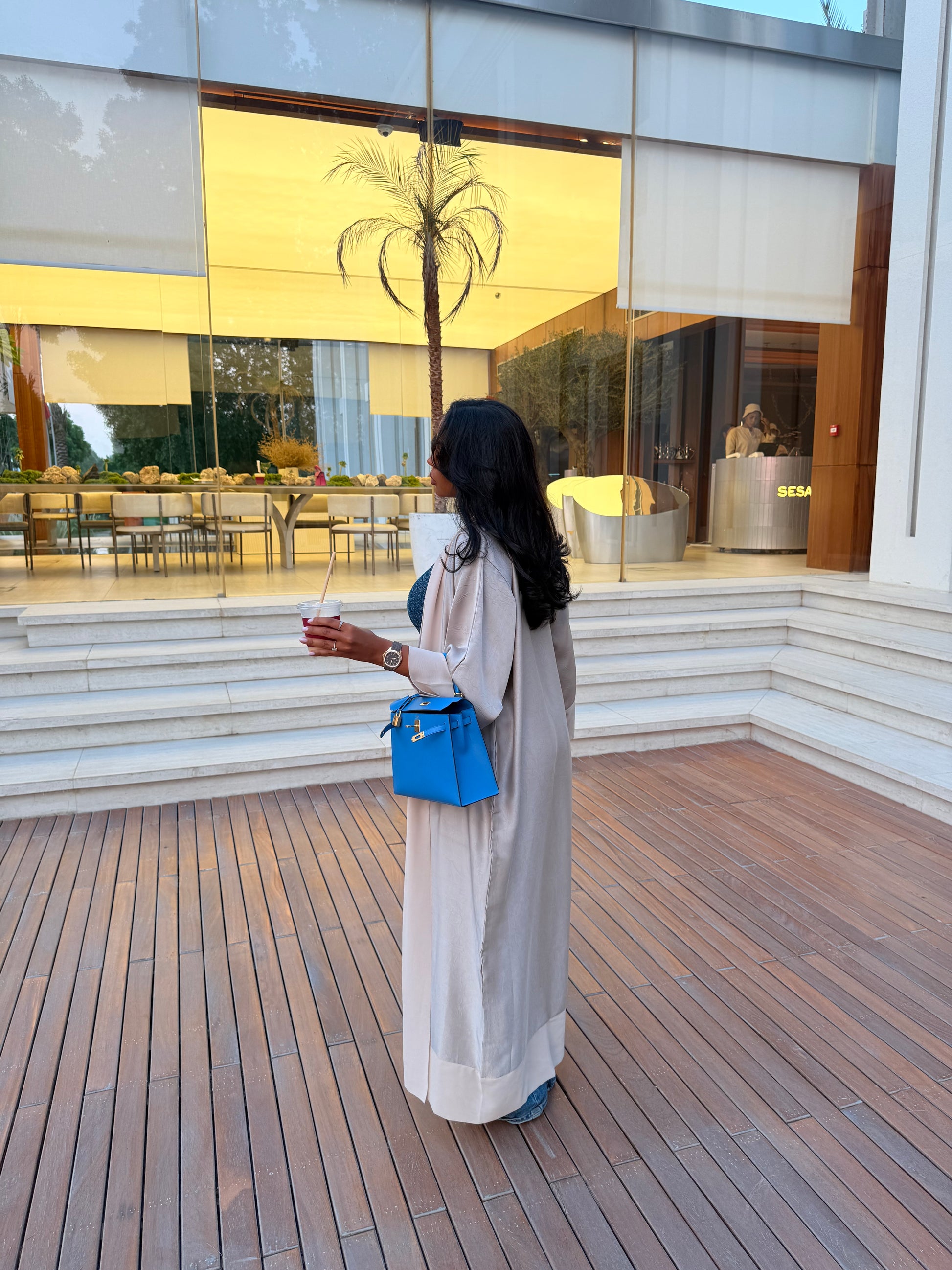 Ce kimono en beige nacré combine élégance subtile et modernité. Son tissu à effet légérement texturé apporte de la profondeur à la pièce tout en restant minimaliste. La coupe ouverte et fluide crée un tombe sophistiqué qui met en valeur n’importe quelle tenue. Facile à porter au quotidien ou lors d’occasions habillées, elle se marie parfaitement avec une palette d’accessoires dorés ou colorés pour un look raffiné.
