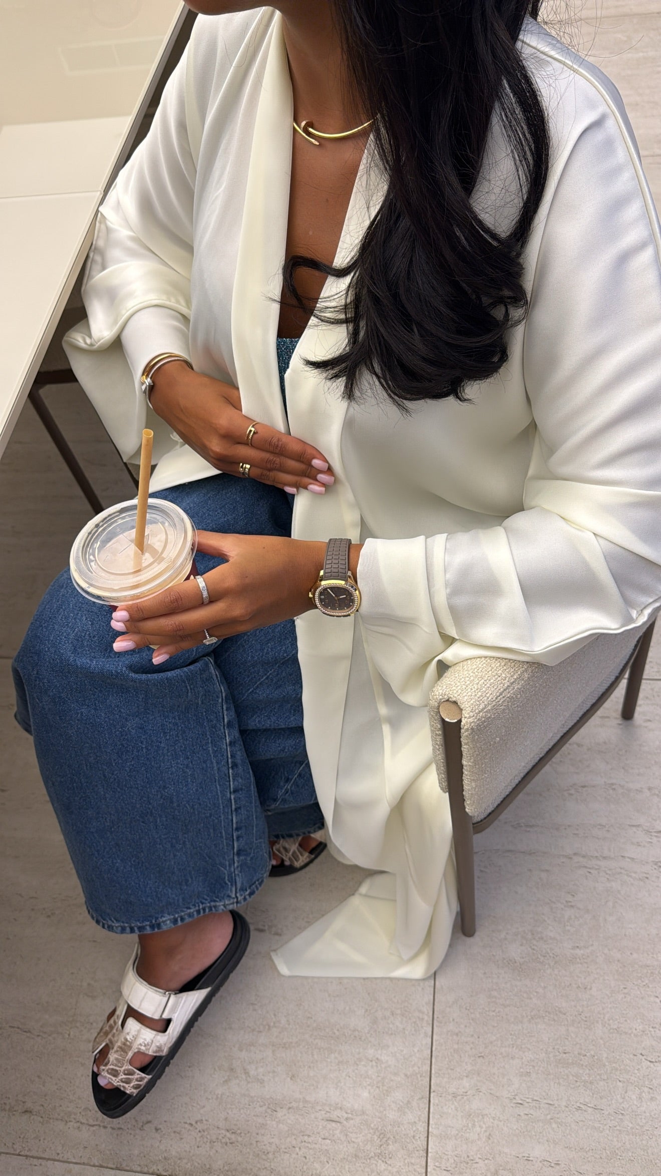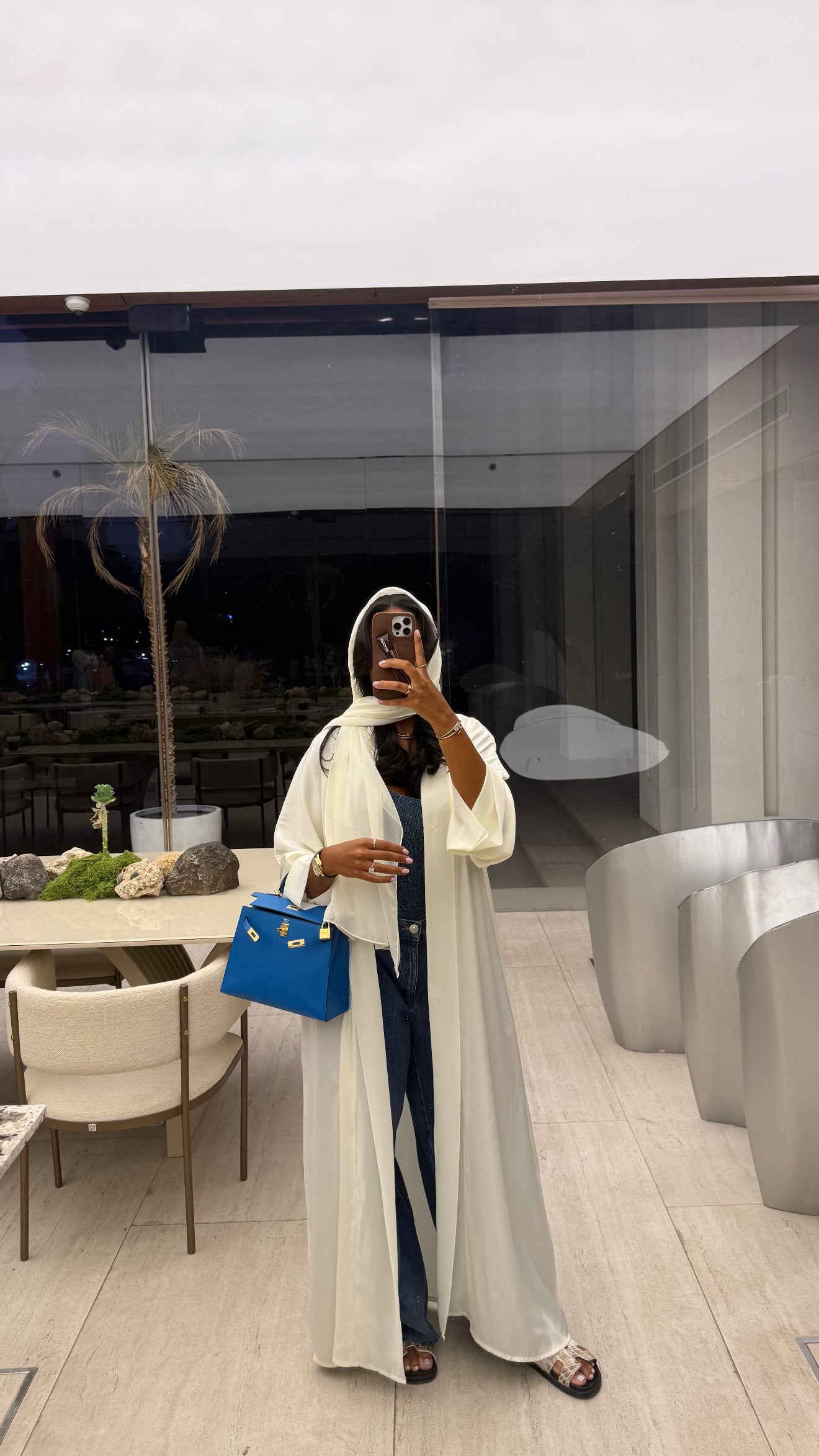 Cette Abaya longue couleur crème incarne une élégance moderne et minimaliste. Conçue dans un tissu fluide au tombé raffiné, elle offre un confort optimal tout en conservant une allure sophistiquée. Le voile intégré ajoute une touche de modestie chic. Idéale pour les journées décontractées comme pour des occasions plus habillées, elle se porte facilement avec des accessoires haut de gamme pour un look distingué.