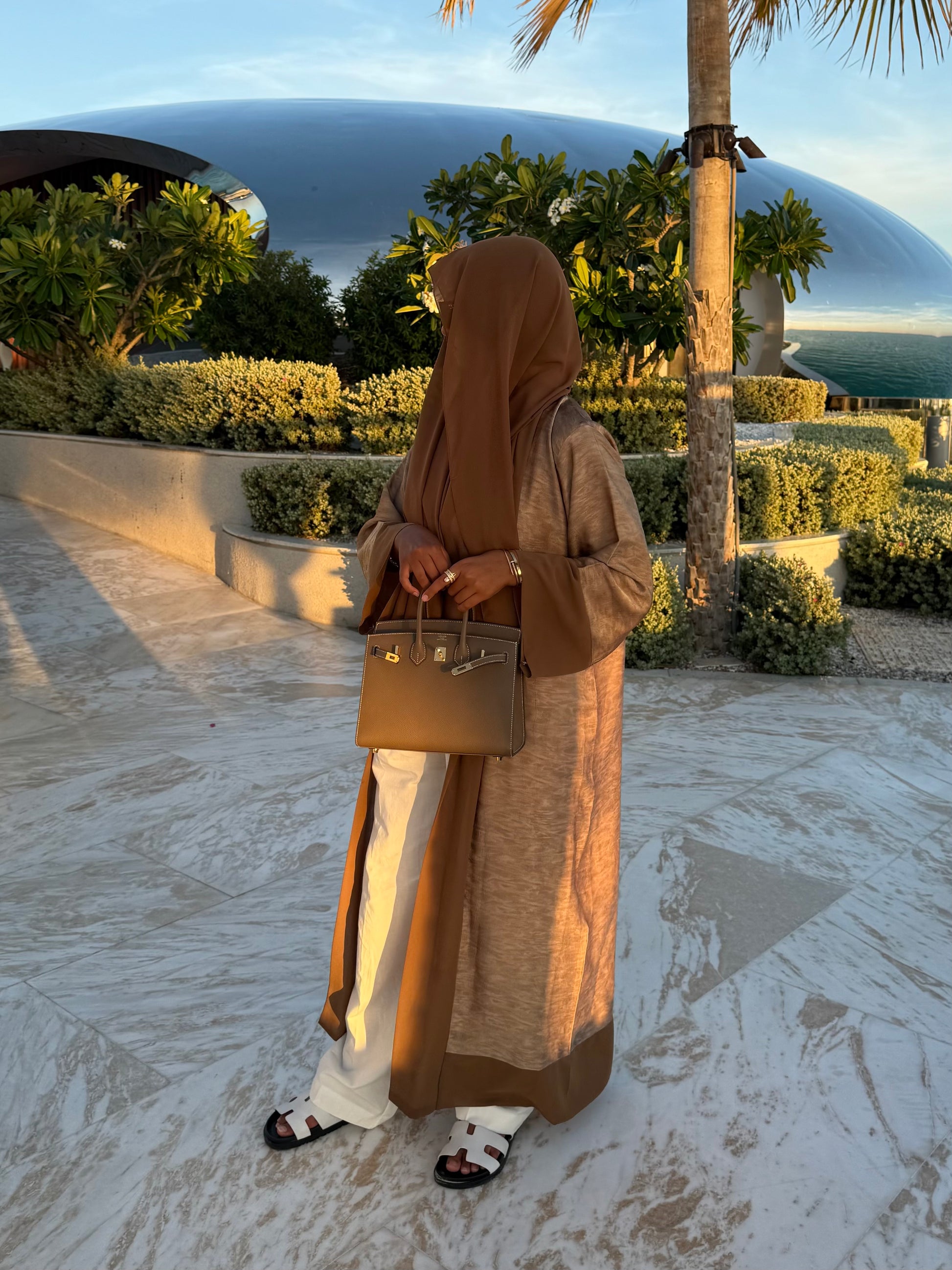 Laissez-vous envelopper par l’élégance discrète du kimono Noor Sunset, une pièce fluide au tombé naturel, pensée pour sublimer chaque silhouette. Son jeu subtil de tons caramel et beige doré rappelle les reflets du soleil couchant. Ce kimono se distingue par son effet soyeux légèrement irisé, apportant une touche de raffinement unique à vos tenues quotidiennes ou de soirée.