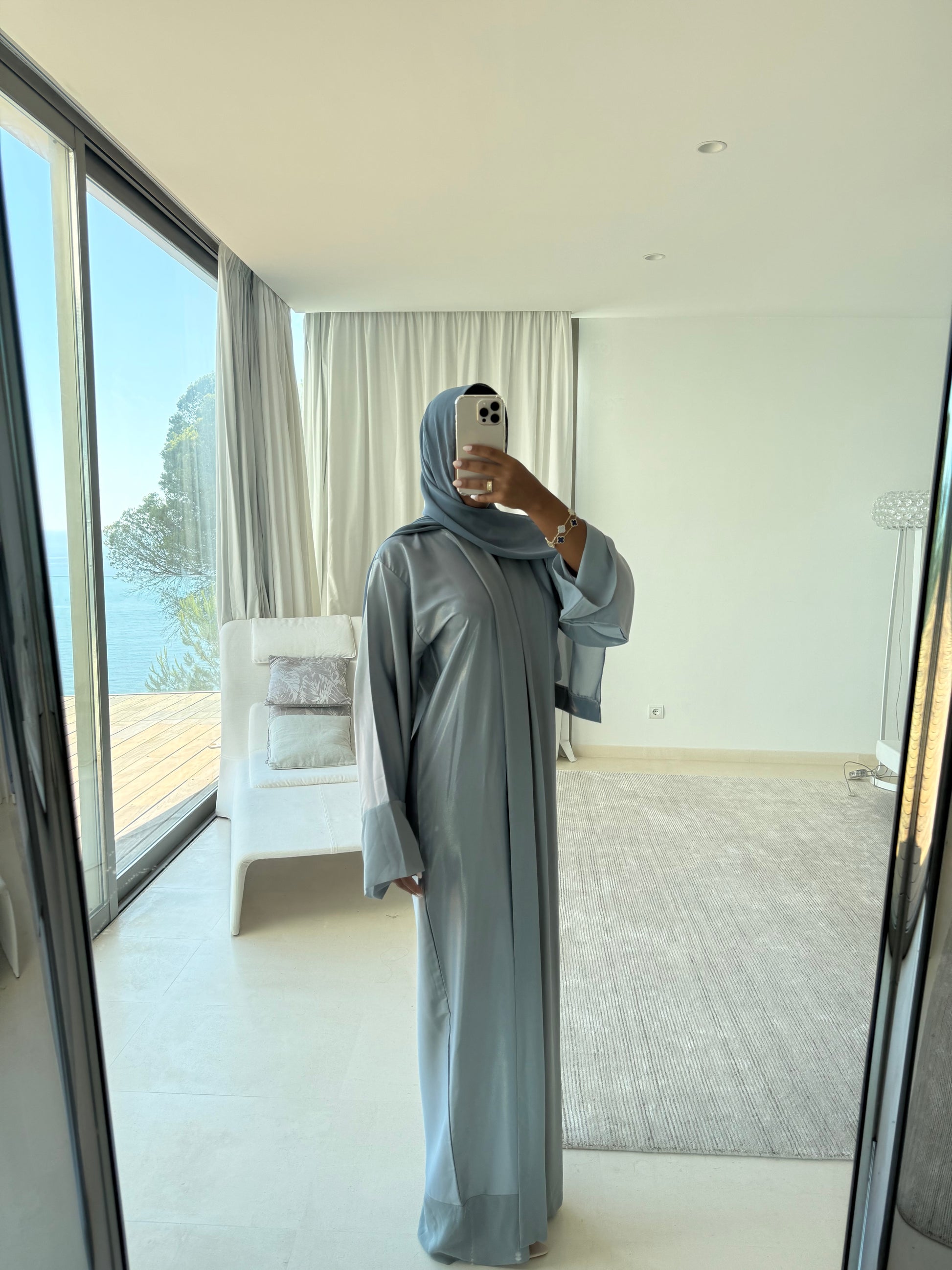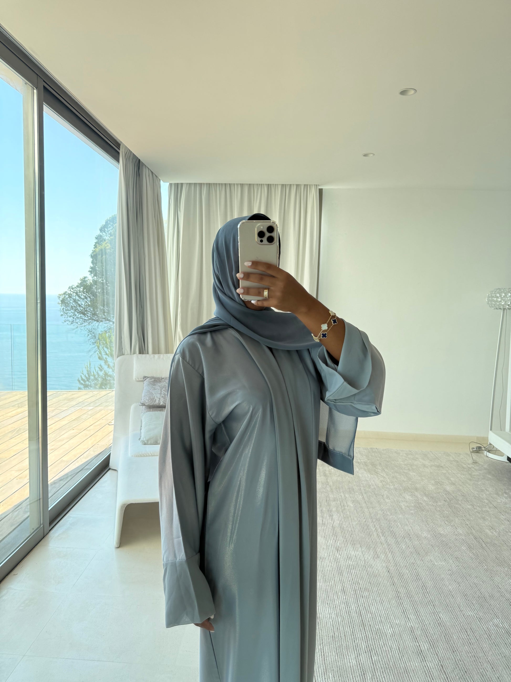 Sublimez votre allure avec cette abaya satinée dans une teinte bleu céleste douce et lumineuse. Confectionnée dans un tissu fluide au tombé impeccable, elle offre une élégance naturelle et un confort optimal. Ses manches larges avec finition contrastante ajoutent une touche contemporaine et sophistiquée. Idéale pour les occasions spéciales comme pour le quotidien raffiné.