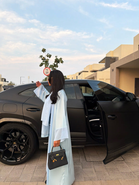 Abaya Bleu Ciel - Ensemble 3 pièces
